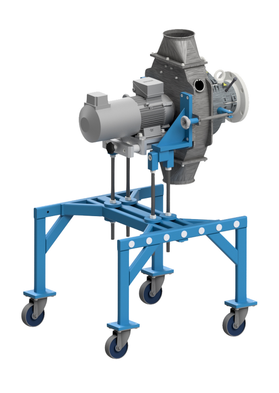 The pellets cut by the GKX pelletising head in the hot cut-off process are blown into a cyclone by means of a conveyor fan via an approx. 10 m long conveyor line. From there it falls via a switch into the cooling channel.